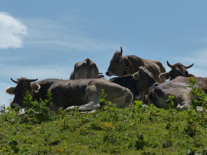 Keywords: cows rest break mosquitoes alm alpine meadow animals dairy cows cattle