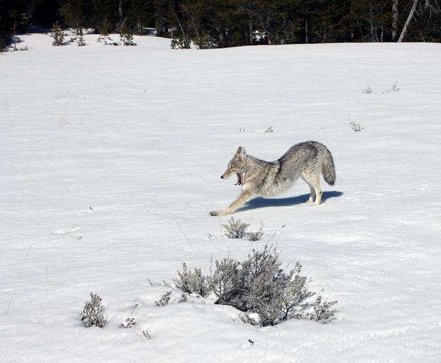 Keywords: coyote stretching wildlife nature snow predator wilderness wild portrait furry mammal carnivore hunter outdoors