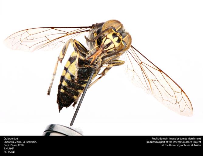 Keywords: sand wasp sandwasp hymenoptera crabronidae white background Crabronidae Chontilla, 22km. SE Iscozazin, Dept. Pasco, PERU 9.vii.1961 F.S. Truxal Crabronidae Chontilla, 22km. SE Iscozazin, Dept. Pasco, PERU 9.vii.1961 F.S. Truxal