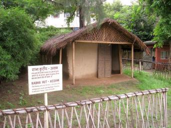 Keywords: Crafts Museum New Delhi 3 Sep 2010-14.JPG A traditional Rabha hut at the Village complex in Crafts Museum New Delhi India I took this photograph 2010-09-05 Daderot Huts in the Crafts Museum New Delhi