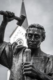 Keywords: craftsmen sculpture face man statue hammer craft art human fig church