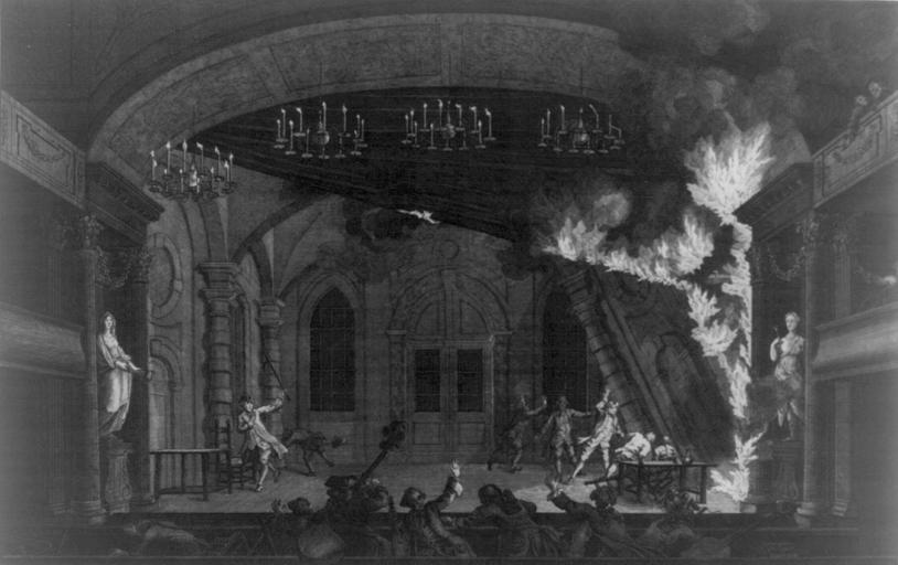 | Keywords: Crajenschot-Schouwburg-fire-1772.jpeg Afbeelding van den Brand op't Tooneel in den Schouwburg te Amsterdam; den 11<sup>den</sup> May 1772 De vlam barst uit elk voelt door schrik zich overheeren Hoe schielijk kan't vermaak in jammerklagt 1772 engraving Library of Congress Prints Photographs Division LC-USZ62-22043 b w film copy neg http //memory loc gov/master/pnp/cph/3a20000/3a23000/3a23100/3a23138u tif uncompressed archival TIFF version 1799 KiB color level cropped and converted to JPEG quality level 88 with the GIMP 2 6 1 No known restriction on publication other versions LOC-image cph 3a23138 PD-old-100 Theodorus Crajenschot 1772 in Amsterdam 1772 in theatre Burning buildings in art Historic fires Schouwburg Van Campen Interiors of theaters in art |