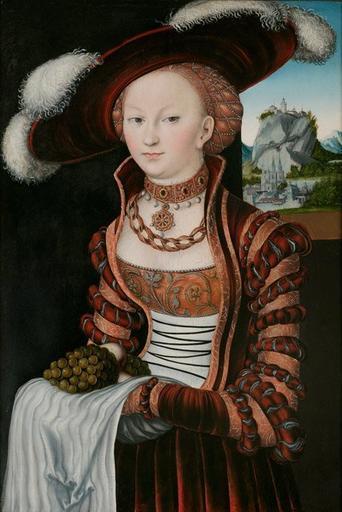 View Original:cranach_portrait_young_woman_holding_grapes_apples_1528.jpg (427x640)