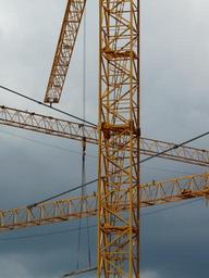 Keywords: crane baukran site build construction work technology metal iron strive yellow