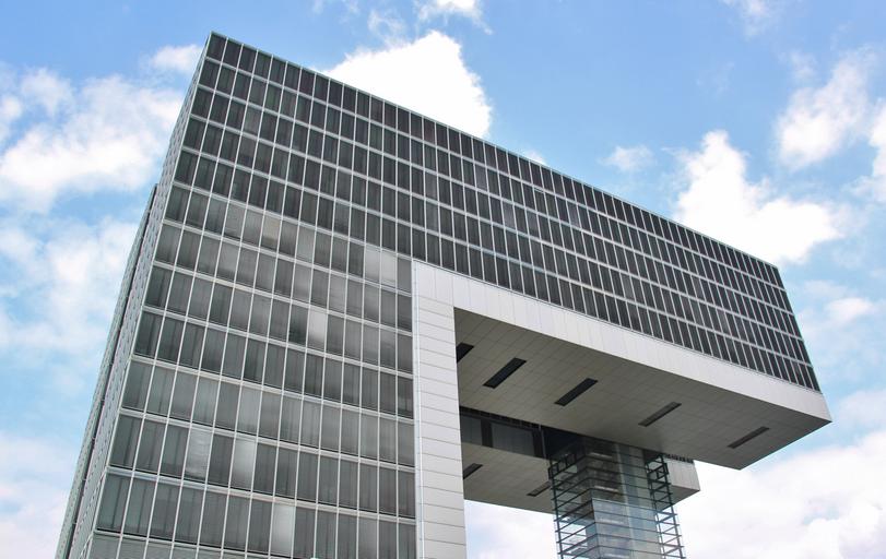 Keywords: crane homes cologne architecture mirror mirroring modern glass building stairs high window facade home glass window wall perspective modern architecture sky view top sky and clouds rhine river