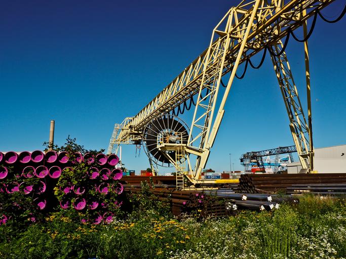 Keywords: crane pipes lifting crane loads cargo harbour cranes industry harbour crane inner harbour rhine düsseldorf industrial plant