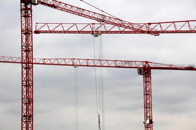 Keywords: crane structure technology construction work site construction work construction machinery baukran metal lattice boom crane crane boom red