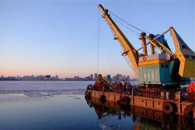 Keywords: crane swimming boat harbor float heavy industry port water dock shipping freight lifting load lift platform carrier cargo steel large harbour equipment frozen ice