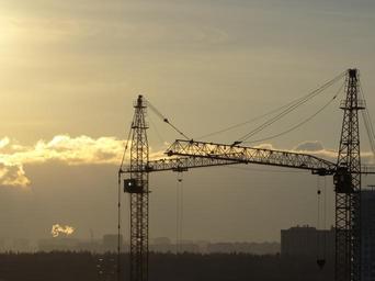Keywords: cranes sunset zoomed sky urban