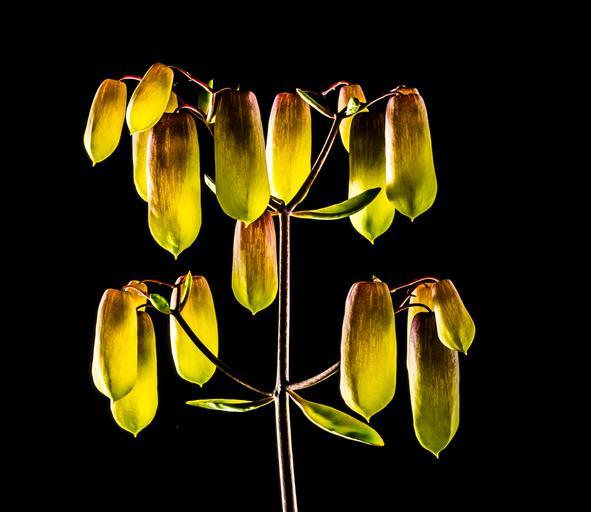Keywords: crassulaceae yellow blossom bloom bright illuminated exotic tropical lantern like oblong hanging tubular tube like kalanchoe pinnata kalanchoe thick sheet greenhouse goethe plant succulent