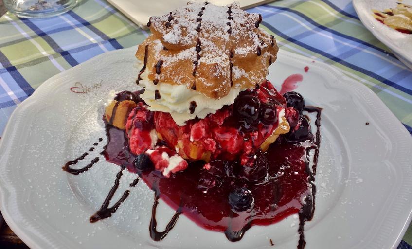 Keywords: cream puff delicious sweets food dessert baked goods sugar sweet cake cream berries whipped cream pastries cherries bake