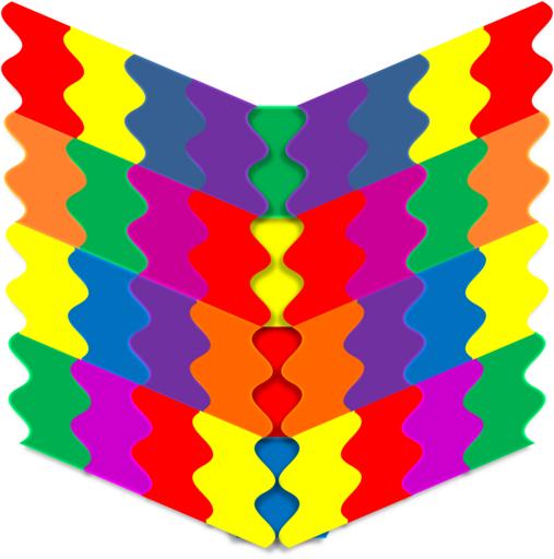 Keywords: creative abstract rainbow color design pattern puzzle pieces red orange yellow green blue indigo violet purple colour fun bright vivid vibrant shape geometric 3d design element connect wavy