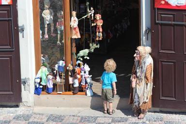 Keywords: prague czech republic 2012 marionette puppets boy curious touring sightseeing outdoor A young boy peers into a Marionette puppet shop. Prague, Czech Republic 2012 A young boy peers into a Marionette puppet shop. Prague, Czech Republic 2012