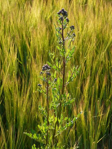 Keywords: creeping thistle acker thistle cirsium arvense herbaceous plant field thistle thistle flower blossom bloom plant flora barley field barley cereals grain cereal cornfield