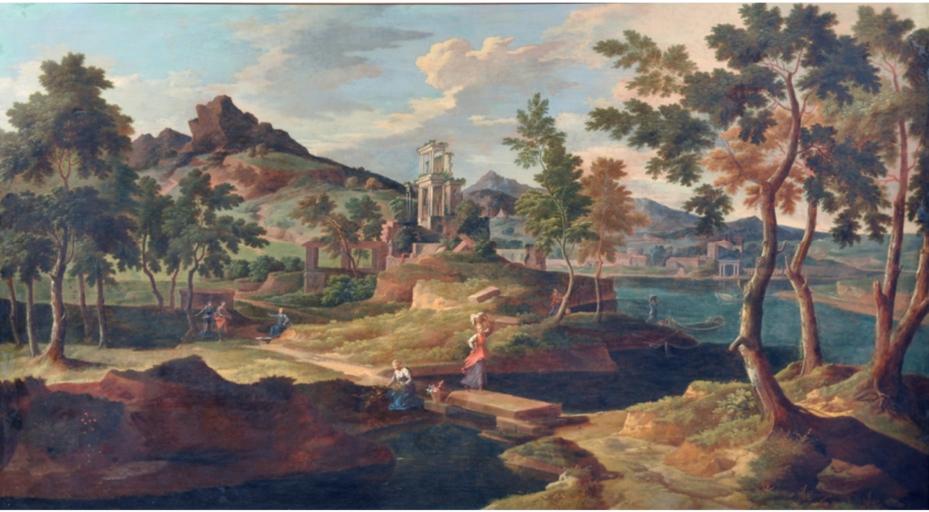 | Keywords: Crescenzio Onofri - Idealised landscape of the Roman Campagna.png Artwork Creator Crescenzio Onofri 1670-1712 Oil on canvas size cm 88 160 Private collection object history credit line accession number http //www vincentgalleria it/Lista-Lotti aspx idAsta 272 idCategorie 30 PD-old-100 Crescenzio Onofri 17th-century landscape paintings |