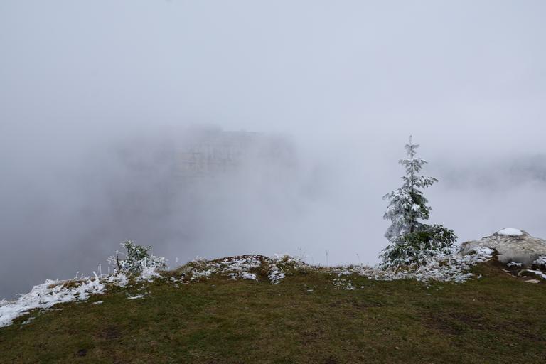 Keywords: creux du van mountains abyss switzerland cliff fog white trees jura winter