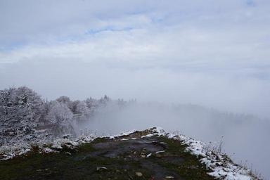 Keywords: creux du van switzerland noiraigue swiss jura stone wall wall mountains jura winter fog white cliffs trees