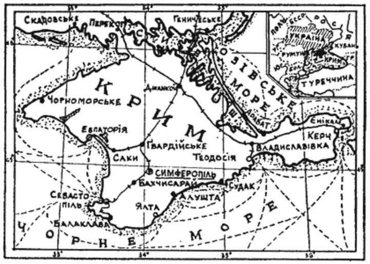 | Keywords: Crimea 1.gif A Ukrainian map of Crimean peninsula Полковник Пет о Болбочан т агедія ук аїнського де жавника Colonel Petro Bolbochan a tragedy of the Ukrainian statesman ISBN 966-8201-04-3 1918 author public domain <b style color 060; ><i>R</i>levse</b> <span style color 990; >Talk</span> </span> 2010-05-5 DEFAULTSORT 1918 Old maps of Crimea Maps of Ukrainian People's Republic Maps of the military history of Ukraine Army of the Ukrainian People's Republic PD-Ukraine 1910s | ||||