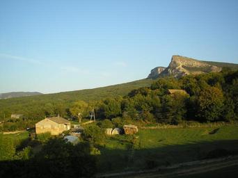 Keywords: crimea landscape mountains scenic sky clouds nature outside forest trees vista summer spring country countryside rural woods farm buildings fields