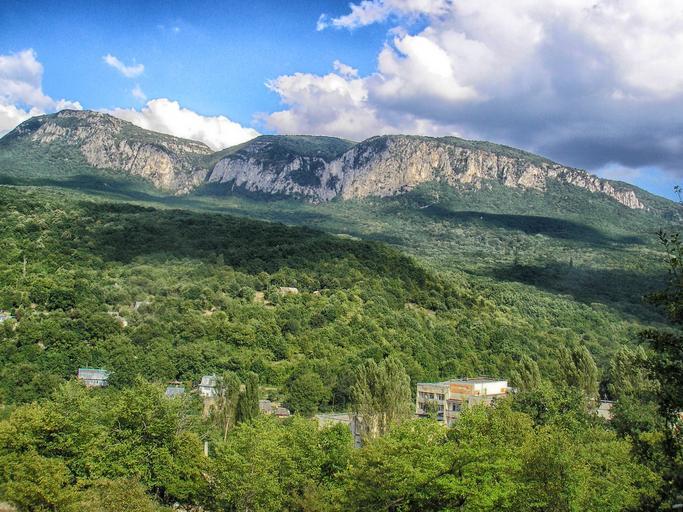 Keywords: crimea landscape mountains valley ravine forest trees woods summer spring village nature outside country countryside