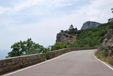 Keywords: crimea mountains mountain road church foros