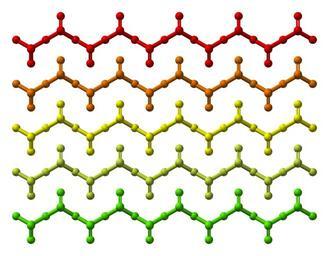 | Keywords: CrO3-from-xtal-1970-bulk-chains-distinguished-by-colour-3D-balls.png en Ball-and-stick model of part of the crystal structure of chromium trioxide CrO<sub>3</sub> Colour code Atoms are not coloured according to which element they are as is usually the case Instead different colours correspond to different CrO<sub>3</sub> <sub>n</sub> chains Structure by X-ray crystallography from http //dx doi org/10 1107/S0567740870002182 Acta Cryst B 1970 26 222-226 Model manipulated in http //www crystalmaker com/ CrystalMaker 8 3 Image generated in http //accelrys com/products/discovery-studio/visualization/discovery-studio-visualizer html Accelrys DS Visualizer Own 2011-03-21 Ben Mills Benjah-bmm27 Images by Ben Mills Chromium trioxide |