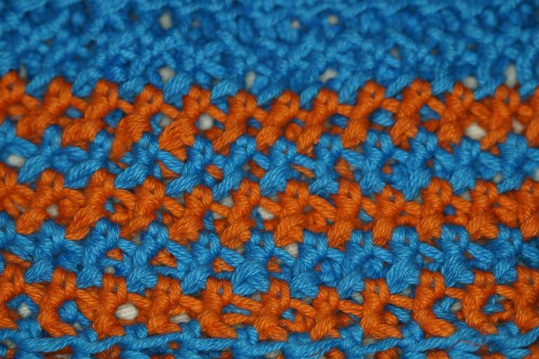 Keywords: crochet hand labor hobby orange blue striped structure texture background mesh häkelmaschen chopsticks close