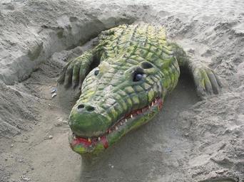 Keywords: crocodile sand sculpture beach