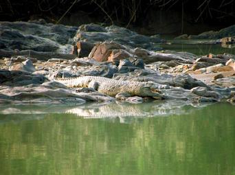Keywords: crocodile wild animal river namibia green water dangerous teeth reptile