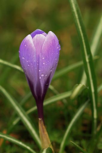 Keywords: crocus blossom bloom flower spring close plant nature bloom spring flower harbinger of spring frühlingsanfang garden raindrop drop of water beaded wet frisch flora early bloomer