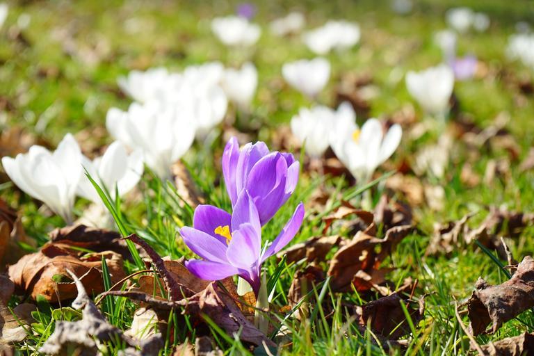 Keywords: crocus flower spring purple blossom bloom close white