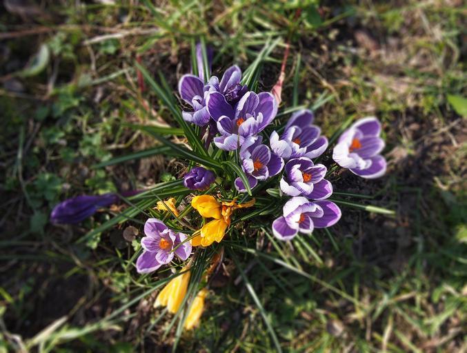 Keywords: crocus flowers frühlingsblüher garden purple yellow