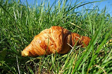 Keywords: croissant roll bread pastry food nutrition breakfast brown croissant in the grass picnic grass