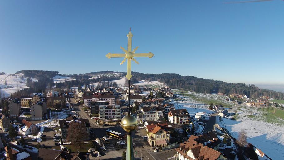 Keywords: cross church st angel castle gallen religion catholic symbol christian aerial aerial view