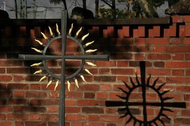 Keywords: cross sun cemetery shadow wall light brick