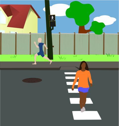 Keywords: crossing crosswalk fence jogging manhole neighborhood pedestrian road sewer sidewalk street walk walking