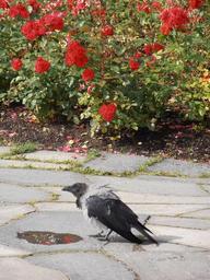 Keywords: crow rose flowers bird pathway flagstone