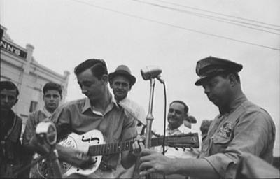 Keywords: CrowleySteelGuitar1938.jpg Steel guitarist at microphone Cajun band contest National Rice Festival Crowley Louisiana 1938 Photo by Russell Lee for Farm Security Administration/WPA via http //hdl loc gov/loc pnp/fsa 8a24087 1938-10 Creator Russell Lee PD-USGov National Rice Festival 1938 Music in 1938 Guitarists with guitars Musicians from Louisiana Men with microphones Cajun musicians Black and white photographs of men |