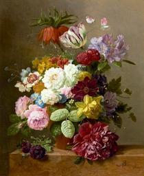 | Keywords: flowers roses rosa fritillaria fritillary crown imperial crownimperial tulip sweet pea tulipa lathyrus sweet pea sweetpea azalea rhododendron convolvulus bush morning glory bushmorningglory dahlia narcissus moss rose mossrose flower cut flowers cutflowers maroon maroon flowers maroonflowers red red flowers redflowers yellow yellow flowers yellowflowers pink blue white pink flowers pinkflowers white flowers whiteflowers blue flowers blueflowers bouquet plant flowers&colors flowerscolors Oil on Canvas. Arnoldus Bloemers (1786-1844) From the Swallowtail Garden Seeds collection of botanical images and illustrations. This image is in the public domain. Oil on Canvas. Arnoldus Bloemers (1786-1844) From the Swallowtail Garden Seeds collection of botanical images and illustrations. This image is in the public domain. |