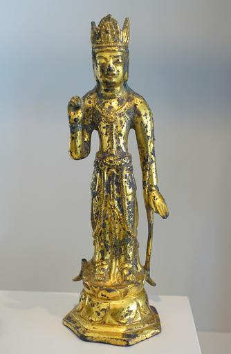 Keywords: Crowned Bodhisattva, probably Mahasthamaprapta, Korea, Three Kingdoms period, probably Paekche kingdom, 600-650 AD, gilt bronze - Arthur M. Sackler Museum, Harvard University - DSC00875.jpg en Exhibit in the Arthur M Sackler Museum Harvard University Cambridge Massachusetts USA This artwork is in the public domain because the artist died more than 70 years ago 2015-04-11 11 01 07 own Daderot other versions PD-old-70 cc-zero Buddhist statuettes in the Arthur M Sackler Museum Korean metalwork in the Sackler Museum Sculptures of Korea in the Arthur M Sackler Museum Buddhist crowns |