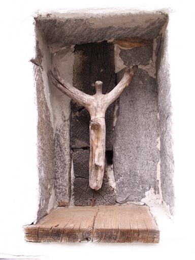 Keywords: crucifix crucified cross wall niche driftwood drift wood of course wood granite stone art condolences obituary