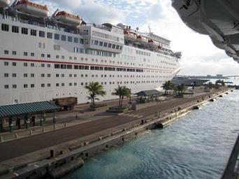 Keywords: cruise ship docked cruise ship pier travel boat vacation tourism vessel nautical holiday journey luxury liner transportation voyage caribbean destination leisure recreation getaway yacht relaxation sail sailing