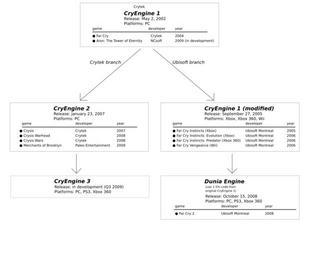 | Keywords: CryEngine family tree v21.svg en This scheme illustrates the development history of CryEngine game engines family This information is provided as at May 2009 ru Эта схема иллюст и ует исто ию азвития иг овых движков се ии «CryEngine» Эта инфо мация п едставлена по состоянию на май 2009 года en Own work by uploader This image was created using Inkscape ru Собственная абота Этот файл был создан с использованием Inkscape NeD80 en May 10 2009 ru 10 мая 2009 года Created with Inkscape CryEngine family tree |