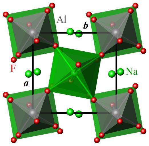 | Keywords: Cryolite RT ab.png en Polyhedral representation of the room temperature crystal structure of cryolite Na3AlF6 space group P21/n No 14 P21/c with different cell setting projected onto the a b plane Gray aluminium atoms green sodium atoms red fluorine atoms own Perditax 2010-09-01 cc-zero Cryolite Crystal structures in space group number 14 |