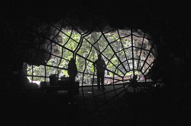 Keywords: Looking out the famous spider gate at Crystal Cave, a commercial cave in Sequoia National Park. NPS Photo by Dale Pate california park spider gate crystal nps national cave sequoia
