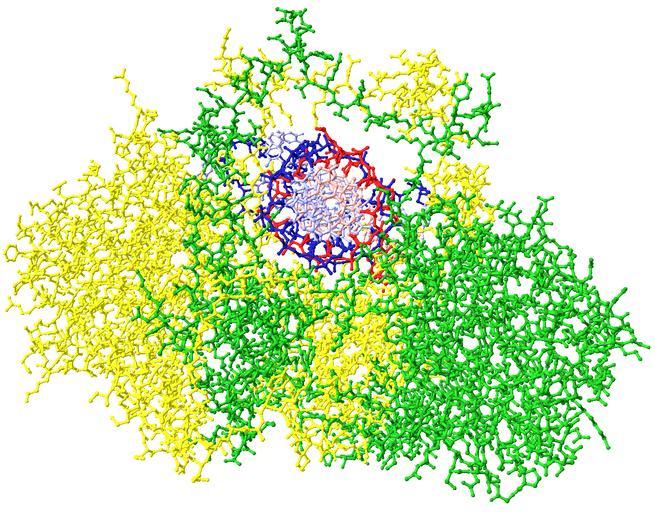| Keywords: Crystal Structure of the Ku Heterodimer - 30.png All beta proteins SPOC domain-like SPOC domain-like Ku70 subunit middle domain Ku70 subunit middle domain Alpha and beta proteins a or b vWA-like vWA-like Ku70 subunit N-terminal domain Ku70 subunit N-terminal domain All beta proteins SPOC domain-like SPOC domain-like Ku80 subunit middle domain Ku80 subunit middle domain Alpha and beta proteins a or b vWA-like vWA-like Ku80 subunit N-terminal domain Ku80 subunit N-terminal domain pl Heterodimer ludzkiego białka Ku przyłączony do nici DNA Ku70 zaznaczono kolorem zielonym Ku80 - żółtym a łańcuchy DNA - czerwonym i niebieskim Do wizualizacji danych krystalograficznych z pliku PDB 1JEY http //www rcsb org/pdb/explore/explore do pdbId 1JEY użyto programu Swiss-PDBViewer 4 0 1 en Human Ku heterodimer protein attached to DNA Ku70 is marked green Ku80 - yellow and the chains of DNA - the red and blue Crystallographic data visualization of the PDB file 1JEY http //www rcsb org/pdb/explore/explore do pdbId 1JEY used the Swiss-PDBViewer 4 0 1 Own 2009-12-22 User Karol007/signature Own work all rights released Public domain Ku protein |