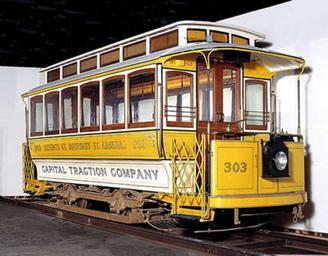 | Keywords: CTC-303.jpg  This 4-wheel electric motor car was one of sixteen built for the Capital Traction Company by the American Car Company Car 303 was assigned to the 7th Street line which ran from the Wharves to Boundary It was used as a motor car and regularly pulled a light trailer car until its retirement from regular service in 1913 This car on display at the Museum of American History is the only Washington streetcar still in the District http //americanhistory si edu/collections/search/object/nmah_843291 Smithsonian National Museum of American History date author PD-USGov original upload log page en wikipedia CTC-303 jpg 2007-07-13 19 15 Volcycle 428×334× 55080 bytes <nowiki>This photo is owned by the Smithsonian's National Museum of American History http //americanhistory si edu/collections/object cfm key 35 objkey 148</nowiki> Trams in Washington D C Number 303 on trams White and yellow trams |
