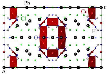 | Keywords: Cumengeite structure.png en Crystal structure of the cumengeite Pb21Cu20Cl42 OH 40·6H2O I4/mmm projected onto the a c plane Black Pb red Cu green Cl blue O gray H own Perditax 2010-09-02 cc-zero Crystal structures of inorganic compounds Cumengeite Copper compounds Lead compounds |