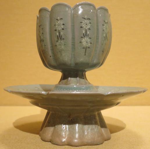 | Keywords: Cup and cup stand with chrysanthemum design from Korea, Honolulu Museum of Art.JPG en Cup and cup stand with chrysanthemum design from Korea Koryo 13th century stoneware with celadon glaze and black and white slip inlay Honolulu Museum of Art accessions 65 66 own Hiart photo 2015 Goryeo celadon in the Honolulu Museum of Art Cc-zero | ||||