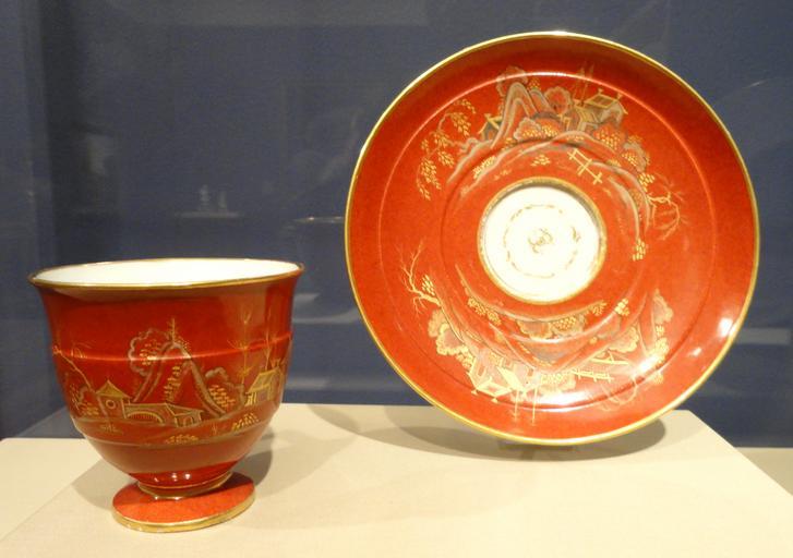 | Keywords: Cup and Saucer, Sevres Porcelain Manufactory, 1790 - Nelson-Atkins Museum of Art - DSC08928.JPG Exhibit in the Nelson-Atkins Museum of Art Kansas City Missouri This artwork is old enough so that it is in the public domain and the museum permitted photography without restriction I took this photograph and release it into the public domain Daderot 2011-11-04 20 17 02 Daderot cc0 cc0 Sèvres porcelain in the Nelson-Atkins Museum of Art Porcelain cups and saucers Tableware in orange | ||||